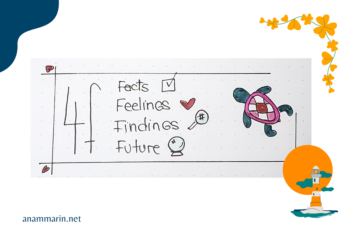 There are several ways to do it, I use the 4F framework created by Dr. Roger Greenaway (expert in training teachers and facilitators). Why am I talking about it? Because I also add it to my journal - as a way to go through some things that I can let go of - to see what worked, what can be done better - but also as a visual and easy way to let go of the energy of the day.
