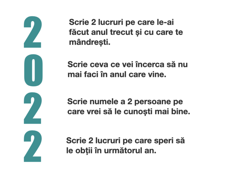 Ușor, simplu, și în pași puțini lista de mai sus îți va oferi un exercițiu de reflecție, dar și niște obiective simple pentru 2022. Ce zici, faci exercițiu alături de mine?