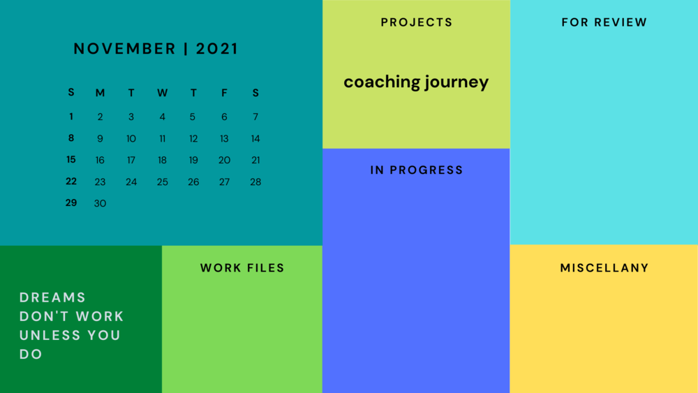 Extrem de ușor de făcut în programul de prezentări disponibil pe calculator - Keynote în cazul meu - poți personaliza așa cum îți dorești ca să te servească și să te susțină în atingerea obiectivelor personale sau profesionale. Este în egală măsură o modalitate de minimalism digital și te va ajuta la a îți ține minte clară și organizată. Pentru că în momentul în care ai terminat documentul, editarea filmului, prezentarea sau orice altceva îl poți muta în dosarul dedicat subiectului și așa vei avea simplu o metodă de organizare.